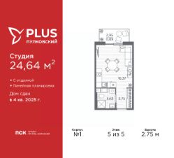 Продается 1-комн. квартира-студия от застройщика с отделкой в ЖК ''PLUS Пулковский'' на 5 этаже. Общая площадь: 22.8 кв.м., площадь гостиной 14.7 кв.м., из которых 5 кв.м. выделено под кухонную зону. Все окна выходят на одну сторону. В квартире один совмещенный санузел. Высота потолков 2.89 м. Дом монолитный, трехподъездный, высотой 5 этажей. Квартира находится в 1-й секции в корпусе 11. На этаже 8 квартир. В подъезде 1 грузовой лифт. Начало строительства - 1 квартал 2026 года. Окончание строительства - 2 квартал 2027 года. Оформление сделки по договору долевого участия. Уютный пятиэтажный city квартал PLUS Пулковский расположен в престижном Московском районе на пересечении Пулковского и Волхонского шоссе в новом формирующемся микрорайоне. Рядом проходит одна из важнейших транспортных артерий города Пулковское шоссе, а в 10 минутах езды два въезда на КАД и въезд на ЗСД. Благодаря удобному и быстрому выезду на Пулковское шоссе, можно легко добраться до центра города за 35 мин. До станций метро ''Московская'' и ''Купчино'' - 15 мин. на машине, а до аэропорта Пулково - 17 мин. В составе квартала: 30 пятиэтажных домов, школа со спортивным стадионом, 2 детских сада с бассейнами, наземные и подземные паркинги, центральный зеленый бульвар с play hub и местами отдыха. Благоустройство квартала продумано до мельчайших деталей, в его основе - забота о качестве жизни каждого жителя. Дома возводятся по современной монолитной технологии строительства с вентилируемыми фасадами. Благодаря большим увеличенным окнам и отсутствию высокоэтажных домов, во всех квартирах максимальный объем естественного света. В составе квартала запланированы социально-значимые объекты: школа на 825 мест со спортивным стадионом и бассейнами, два детских сада с бассейнами на 220 мест каждый. Территория квартала зонирована таким образом, чтобы автомобильные и пешеходные потоки и не пересекались. Прогулочные и велосипедные дорожки отделены от автомобильных проездов зелеными насаждениями. Дворы закрыты для машин, что дает чувство дополнительной безопасности для жителей особенно, для самых маленьких. Вся территория квартала безбарьерная. Здесь нет пандусов, резких перепадов высот или неудобных ступеней. Вход в парадные с уровня земли. В каждом дворе есть своя оборудованная детская площадка. А в центре микрорайона расположится большая игровая площадка play hub с пространством для командных игр. PLUS Пулковский располагается в молодом микрорайоне, который сейчас находится в стадии активного развития. Он будет обладать собственной развитой инфраструктурой. В радиусе 15 минут езды на автомобиле располагаются многочисленные магазины, супермаркеты, спортивные, образовательные и медицинские учреждения, парки и достопримечательности. Для автомашин предусмотрены отдельно стоящий 5-ти этажный паркинг на 958 машино-мест, две подземные парковки на 367 машино-мест и наземные парковочные зоны по внешнему периметру микрорайона. #z6cFv3