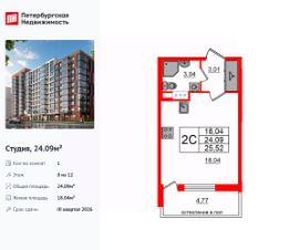 Продается апартамент-студия на 14-м этаже в сданном Апарт-комплексе бизнес-класса ''GloraX Заневский''. Ключи сразу! Общая площадь лота составляет 22,07 кв. м, из которых 18,92 кв. м отведено под жилую. Номер апартамента - 1 419.Преимущества:- Полная чистовая отделка- Возможность покупки меблировка и техника- Вход по ключ-карте- Прачечная на 1 этаже- Возможность дозаказа отельного сервиса- Программы доходности - Летний бар и променад- Воркаут площадка- Pet-friendlyАпартаменты ''GloraX Заневский'' - проект бизнес-класса с развитой инфраструктурой, удовлетворяющей все потребности самых взыскательных гостей. Располагается в одном из наиболее перспективных, районов Петербурга в 2х минутах от метро ''Ладожская'' и в 10 минутах от Невского проспекта.В ''GloraX Заневский'' есть все, что необходимо для комфортной жизни, работы и отдыха. Инфраструктура, покрывающая все потребности и ожидания собственников и арендаторов. В радиусе 150 метров находятся супермаркеты с возможностью доставки продуктов прямо до дверей апартаментов.На 1000 кв. м. общественных пространств расположится уютный лобби-бар, ресторан мировой кухни на 80 человек и оборудованные коворкинги.В апартаментах ''GloraX Заневский'' выполнена современная отделка с использованием высококачественных экологичных материалов. В проекте предусмотрен подземный отапливаемый паркинг на 100 мест, куда можно спуститься на лифте прямо от дверей апартаментов.Цена указана при 100% оплате или стандартной ипотеке. Узнайте подробности в Отделе продаж.