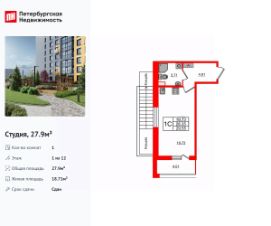 Продается просторная студия от застройщика в жилом комплексе ''Прайм Приморский'' в динамичном Приморском районе.До метро можно добраться на транспорте всего за 15 минут.Удобная, классическая, функциональная европланировка, просторная прихожая 5.18 м². Общая площадь студии - 27.9 м², жилая 18.71 м², высота потолка 2.77 м.Квартира продается с отделкой ''NORD LINE WHITE ВК''.Что особенного в ЖК ''Прайм Приморский''?• Живописные виды на Шуваловский карьер и лесной массив• ''Парящие'' французские балконы• Центральная входная группа• Креативное пространство в центре проекта, летняя терраса для отдыха• Приватные лаундж-зоны на крыше домов (3 корпус)
