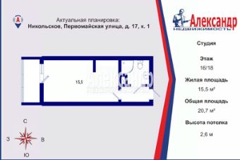Номер объявления: 21005 - назовите его оператору. Предлагается к продаже квартира студия в ЖК ''Первомайский'' от строительной компании Петрострой, дом 2013 года.Локация:- Тосненский район- транспортное сообщение - автобус ходит от метро Купчино, Рыбацкое или можно с Московского вокзала на электричке до платформы Ивановская и далее автобус- на автомобиле до центра города можно добраться за один час с условием платной дороги- вблизи Тосненский водопады и Саблинские пещеры- неплохая инфраструктура, есть взрослая и детская поликлиники, коммерческие медицинские центры- в городе несколько школ и детских садов- есть МФЦ, отделение банков, ДК, городская баня, кофейни и пекарни, пункты доставки, аптеки и продуктовые магазины- вокруг много лесов, зеленых зон и протекает река Тосна О Квартире:- сделан косметический ремонт - в данный момент никто не проживает - квартира никогда не сдавалась- окна выходят на юго-восток в сторону частного сектора- выделена зона кухни и комнатыПрямая продажа, один собственник будет самостоятельно присутствовать на сделке, никто не зарегистрирован, нет обременений и не использовался материнский капитал, первая продажа, приобреталась у застройщика.Цену готовы обсуждать только после просмотра.