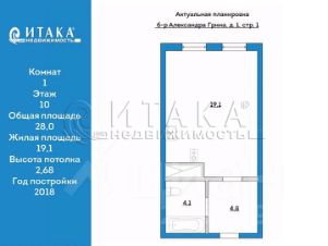 1-91869 Продажа студии(апартаменты) 28кв.м. на десятом этаже в ЖК ''Я-Романтик'', здание ''Круиз-Апарт''. Вход со стороны кафе. Подойдет как для инвестиций (доход от 30тр), так и для постоянного проживания. Большая комната (19,1кв.м.) с двумя окнами. Полная чистовая отделка, в санузле ремонт не от застройщика, хороший кафель. Встроенная кухня, мебель, бытовая техника. Окна во двор. Просторные холлы, современная архитектура здания, много лифтов, многоуровневый паркинг. Ухоженная благоустроенная придомовая территория, есть беседки для гриля. Красивый развивающийся микрорайон в непосредственной близости от береговой линии, свежий воздух с Финского залива Отличная транспортная доступность: Метро Приморскаяминут общественным транспортом, остановка рядом). До центра города 20 минут на машине. Один собственник, полная стоимость в договоре. Показы по договоренности. Звоните!Итака. Работаем с 1993 года.