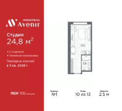 Однокомнатные апартаменты-студия с отделкой в ЖК ''Industrial AVENIR'' на 10 этаже. Общая площадь: 24.5 кв.м., площадь гостиной 20.7 кв.м., из которых 5 кв.м. выделено под кухонную зону. Все окна выходят на одну сторону. В апартаментах один совмещенный санузел. Высота потолков 2.5 м. Апартаменты находятся в корпусе 1. Дом монолитный, одноподъездный, высотой 13 этажей. На этаже 64 квартиры. В подъезде 3 пассажирских и 3 грузовых лифта. Окончание строительства - 3 квартал 2026 года. Оформление сделки по договору долевого участия. В шаговой доступности от дома имеются станции метро (расстояние по прямой): ''Кировский завод'' (300 м), ''Автово'' (1.6 км), также недалеко от этого корпуса расположены станции метро: ''Нарвская'', ''Ленинский Проспект'', ''Балтийская''. 13ти этажное здание апарт-отеля строится по монолитной технологии. В номерном фонде 739 апартаментов, в том числе юниты с террасами и в формате ''евро 2'', офисные и коммерческие помещения, оборудованный коворкинг, подземный паркинг. На первом этаже лобби 160 кв.м. с рецепшн, выставочным пространством, кафе и гостевой зоной. Окончание строительства апарт - отеля - III квартал 2026 года. Оформление сделки по договору долевого участия. Семейная ипотека на апартаменты не распространяется. ОТДЕЛКАВсе апартаменты сдаются с полной чистовой отделкой, выполненной в концептуальном индустриальном стиле. Стены оформлены обоями под покраску в сером оттенке. Одна из стен акцентная - с декоративной штукатуркой, имитирующей бетон. Элементы черного металла представлены в трековых светильниках, дверной фурнитуре и сантехнике. На полу уложен износоустойчивый ламинат с деревянной фактурой. Еще одним элементом индустриального стиля в отделке апартамента является крупноформатный керамогранит на полу и стенах санузла, имитирующий фактуру и цвет кортеновской стали.ЗD по шоу руму. РАСПОЛОЖЕНИЕ Апарт-отель Industrial Avenir строится в 300-х метрах от метро ''Кировский завод'' и ''Путиловская'' (открытие 2025 г) на центральной магистрали Кировского района проспекте Стачек. Близость развязок с ЗСД и КАД фактически снимает любые ограничения в осмотре пригородов и выбора направлений в личном туристическом плане на день.Предпосылкой для открытия пятого апарт-отеля сети Avenir - Industrial Avenir, стал высокий потенциал локации рядом с крупным производственным кластером, центральной магистралью Кировского района и шаговой доступностью от двух станций метро. Новый апарт-отель возводится рядом с первым апарт-отелем сети - Putilov Avenir, открытым в 2022 году. УПРАВЛЕНИЕ ДОХОДНОСТЬЮУправлением номерным фондом Industrial Avenir займется структура ГК ''ПСК'' PSK Invest, входящая в пятерку крупнейших управляющих компаний апарт-отелями в Санкт-Петербурге. Купить апартаменты в Industrial Avenir возможно сразу с управлением, заключив договор с УК PSK Invest и, тем самым, приобрести готовый арендный бизнес. Апартаменты недвижимое имущество, которое является вашей собственностью, и вы капитализируете свои вложения и по