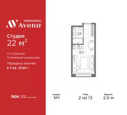1-комн. апартаменты-студия с отделкой в ЖК ''Industrial AVENIR'' на 2 этаже. Общая площадь: 22 кв.м., площадь гостиной 18.2 кв.м., из которых 5 кв.м. выделено под кухонную зону. Все окна выходят на одну сторону. В апартаментах один совмещенный санузел. Высота потолков 2.5 м. Апартаменты находятся в корпусе 1. Дом монолитный, одноподъездный, высотой 13 этажей. На этаже 64 квартиры. В подъезде 3 пассажирских и 3 грузовых лифта. Окончание строительства - 3 квартал 2026 года. Оформление сделки по договору долевого участия. В шаговой доступности от дома расположены станции метро (расстояние по прямой): ''Кировский завод'' (300 м), ''Автово'' (1.6 км), также недалеко от этого корпуса находятся станции метро: ''Нарвская'', ''Ленинский Проспект'', ''Балтийская''. 13ти этажное здание апарт-отеля строится по монолитной технологии. В номерном фонде 739 апартаментов, в том числе юниты с террасами и в формате ''евро 2'', офисные и коммерческие помещения, оборудованный коворкинг, подземный паркинг. На первом этаже лобби 160 кв.м. с рецепшн, выставочным пространством, кафе и гостевой зоной. Окончание строительства апарт - отеля - III квартал 2026 года. Оформление сделки по договору долевого участия. Семейная ипотека на апартаменты не распространяется. ОТДЕЛКАВсе апартаменты сдаются с полной чистовой отделкой, выполненной в концептуальном индустриальном стиле. Стены оформлены обоями под покраску в сером оттенке. Одна из стен акцентная - с декоративной штукатуркой, имитирующей бетон. Элементы черного металла представлены в трековых светильниках, дверной фурнитуре и сантехнике. На полу уложен износоустойчивый ламинат с деревянной фактурой. Еще одним элементом индустриального стиля в отделке апартамента является крупноформатный керамогранит на полу и стенах санузла, имитирующий фактуру и цвет кортеновской стали.ЗD по шоу руму. РАСПОЛОЖЕНИЕ Апарт-отель Industrial Avenir строится в 300-х метрах от метро ''Кировский завод'' и ''Путиловская'' (открытие 2025 г) на центральной магистрали Кировского района проспекте Стачек. Близость развязок с ЗСД и КАД фактически снимает любые ограничения в осмотре пригородов и выбора направлений в личном туристическом плане на день.Предпосылкой для открытия пятого апарт-отеля сети Avenir - Industrial Avenir, стал высокий потенциал локации рядом с крупным производственным кластером, центральной магистралью Кировского района и шаговой доступностью от двух станций метро. Новый апарт-отель возводится рядом с первым апарт-отелем сети - Putilov Avenir, открытым в 2022 году. УПРАВЛЕНИЕ ДОХОДНОСТЬЮУправлением номерным фондом Industrial Avenir займется структура ГК ''ПСК'' PSK Invest, входящая в пятерку крупнейших управляющих компаний апарт-отелями в Санкт-Петербурге. Купить апартаменты в Industrial Avenir возможно сразу с управлением, заключив договор с УК PSK Invest и, тем самым, приобрести готовый арендный бизнес. Апартаменты недвижимое имущество, которое является вашей собственностью, и вы капитализируете свои вложения и получаете