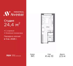 Однокомнатные апартаменты-студия с отделкой в ЖК ''Industrial AVENIR'' на 4 этаже. Общая площадь: 24.4 кв.м., площадь гостиной 20.6 кв.м., из которых 5 кв.м. выделено под кухонную зону. Все окна выходят на одну сторону. В апартаментах один совмещенный санузел. Высота потолков 2.5 м. Апартаменты находятся в корпусе 1. Дом монолитный, одноподъездный, высотой 13 этажей. На этаже 64 квартиры. В подъезде 3 пассажирских и 3 грузовых лифта. Окончание строительства - 3 квартал 2026 года. Оформление сделки по договору долевого участия. В шаговой доступности от дома находятся станции метро (расстояние по прямой): ''Кировский завод'' (300 м), ''Автово'' (1.6 км), также недалеко от этого корпуса расположены станции метро: ''Нарвская'', ''Ленинский Проспект'', ''Балтийская''. 13ти этажное здание апарт-отеля строится по монолитной технологии. В номерном фонде 739 апартаментов, в том числе юниты с террасами и в формате ''евро 2'', офисные и коммерческие помещения, оборудованный коворкинг, подземный паркинг. На первом этаже лобби 160 кв.м. с рецепшн, выставочным пространством, кафе и гостевой зоной. Окончание строительства апарт - отеля - III квартал 2026 года. Оформление сделки по договору долевого участия. Семейная ипотека на апартаменты не распространяется. ОТДЕЛКАВсе апартаменты сдаются с полной чистовой отделкой, выполненной в концептуальном индустриальном стиле. Стены оформлены обоями под покраску в сером оттенке. Одна из стен акцентная - с декоративной штукатуркой, имитирующей бетон. Элементы черного металла представлены в трековых светильниках, дверной фурнитуре и сантехнике. На полу уложен износоустойчивый ламинат с деревянной фактурой. Еще одним элементом индустриального стиля в отделке апартамента является крупноформатный керамогранит на полу и стенах санузла, имитирующий фактуру и цвет кортеновской стали.ЗD по шоу руму. РАСПОЛОЖЕНИЕ Апарт-отель Industrial Avenir строится в 300-х метрах от метро ''Кировский завод'' и ''Путиловская'' (открытие 2025 г) на центральной магистрали Кировского района проспекте Стачек. Близость развязок с ЗСД и КАД фактически снимает любые ограничения в осмотре пригородов и выбора направлений в личном туристическом плане на день.Предпосылкой для открытия пятого апарт-отеля сети Avenir - Industrial Avenir, стал высокий потенциал локации рядом с крупным производственным кластером, центральной магистралью Кировского района и шаговой доступностью от двух станций метро. Новый апарт-отель возводится рядом с первым апарт-отелем сети - Putilov Avenir, открытым в 2022 году. УПРАВЛЕНИЕ ДОХОДНОСТЬЮУправлением номерным фондом Industrial Avenir займется структура ГК ''ПСК'' PSK Invest, входящая в пятерку крупнейших управляющих компаний апарт-отелями в Санкт-Петербурге. Купить апартаменты в Industrial Avenir возможно сразу с управлением, заключив договор с УК PSK Invest и, тем самым, приобрести готовый арендный бизнес. Апартаменты недвижимое имущество, которое является вашей собственностью, и вы капитализируете свои вложения и п