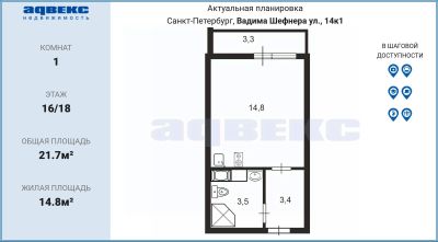 Продаётся светлая и просторная квартира - студия , общей площадью 30м2. Квартира расположена на 12ом этаже современного жилого комплекса комфорт класса ЖК Магелан. В доме закрытая благоустроенная территория с детскими, спортивными площадками и зонами досуга, круглосуточная охрана и сервис, система видеонаблюдения. Рядом с домом находится выезд на КАД и ЗСД а также много полезной и развитой инфраструктуры. В транспортной доступности от дома (7мин.) находится м.Приморская. В квартире выполнен современный и качественный евроремонт с использованием качественных премиальных отделочных материалов. Так же квартира имеет хорошо продуманную планировку с системами хранения и грамотной инженерией, благоустроенный балкон, все коммуникации и инженерные сети новые, выполнена шумоизоляция межэтажных перекрытий и стояков. Окна выходят в тихий и спокойный двор.Вся новая техника и мебель остаются. Квартира готова к продаже, документы готовы, вложений не требует. Продается в связи с необходимостью расширения семейной жилплощади. Комплектация: 1. Двери входные Гранит Т3М (130мм)2. Двери межкомнатные RADA DOORS Antique Н=2,3м.3. Стены (высококачественная штукатурка, малярные работы с холстом, покраска краской Dulux Ultra Resist с воском. 4. Пано обои (AS Creation - коллекция Versace 5 альбом, new)5. Потолки натяжные с нишами, парящие ( шумоизоляция Rockwool Акустик Батс ПРО 50мм ) 6. Полы и стены - (кварцвинил высокого качества, итальянский керамогранит ) 7. Мебель (Система хранения по индивидуальному проекту, ЛДСП Egger)8. Сантехника последняя коллекция AM.PM Func9. Черновая инженерия из качественных итальянских и немецких комплектующих.10. Умный видеодомофон Base IP, Кондиционер TESLA11. Техника Bosch, LG, Kerting, Samsung12. Ортопедический двуспальный диван-трансформер.