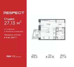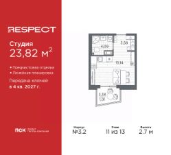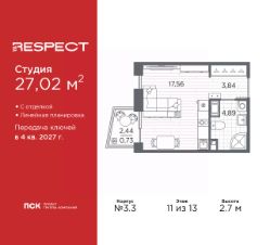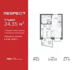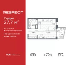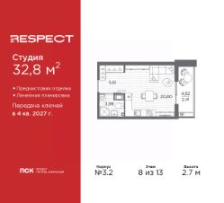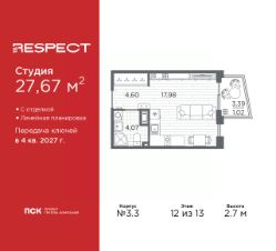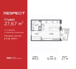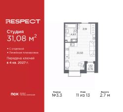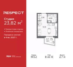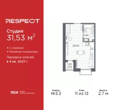 1-комн. квартира-студия с отделкой в ЖК ''RESPECT'' на 8 этаже. Общая площадь: 31.2 кв.м., площадь гостиной 22.81 кв.м., из которых 5 кв.м. выделено под кухонную зону. Все окна выходят на одну сторону. В квартире один балкон, один совмещенный санузел. Высота потолков 2.7 м. В ЖК Respect представлены два варианта чистовой отделки: светлая и тёмная. Потолки: натяжные или выравнивание с окраской,Окна: из ПВХ профиля с двухкамерным стеклопакетом,Остекление балконов и лоджий: алюминиевое однослойное,Полы: покрытие из ламината, полы санузлов: керамическая плитка или керамогранит,Стены: обои под окраску, стены санузлов: керамическая плитка или керамогранит.Установлены межкомнатные двери.Санузел: раковина с тумбой, ванна или душевая кабина, унитаз, смесители. Выполнена полная разводка электропроводки. Дом монолитный, многоподъездный, переменной этажности, от 8 до 13 этажей. Квартира находится в 1-й секции высотой 13 этажей в корпусе 3.3. На этаже 6 квартир. В подъезде 1 пассажирский и 1 грузовой лифт. Начало строительства - 3 квартал 2025 года. Окончание строительства - 4 квартал 2027 года. Оформление сделки по договору долевого участия. В шаговой доступности от жилого комплекса имеются станции метро (расстояние по прямой): ''Лесная'' (800 м), ''Площадь Мужества'' (1.4 км), ''Выборгская'' (1.9 км), также недалеко от этого корпуса находятся станции метро: ''Академическая'', ''Политехническая''. Квартал строится на Полюстровском пр, 87, в одной из самых востребованных локаций Петербурга. В 10 минутах пешком - метро ''Лесная'' и в 10 минутах на транспорте - Петроградская сторона. Высота домов от 7 до 13 этажей. На территории Respect строится школа на 1125 учащихся и детский сад на 240 мест. Запроектированы собственная газовая котельная, закрытая территория, дворы без машин и подземные паркинги с лифтами. Вентилируемые фасады облицованы клинкерным кирпичом. Дома из этого материала служат веками, являясь гордостью хозяев. Дизайн парадных зон и входных групп - сочетание лаконичности отделки и декоративных элементов с текстурами из натурального камня и дерева с приглушенной подсветкой теплым светом. Во входных группах расположены гостевые зоны с мягкой мебелью. Вся территория квартала будет связана единой концепцией благоустройства, разработанной ландшафтным бюро L.BURO. В основе - идея создания увлекательного ландшафтного пространства для насыщенной жизни, включающего в себя пейзажные зоны, современные архитектурные композиции, открытые террасы на стилобатах с зонами отдыха и парклетами, спортивными площадками. Это пространство для людей всех возрастов и различных увлечений. На эксплуатируемой кровле на уровне первого этажа в домах 1 и 4 будут обустроены общественные видовые террасы. В квартале запроектированы внутренние закрытые территории дворов домов без доступа автомобилей и безбарьерная среда для велосипедистов и колясок. Предусмотрены IP-домофония с функцией дистанционного открывания калиток и парадных, а также дистанционный сбор пока