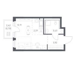 В продаже студия в корпусе 35.1 ЖК 'Новое Колпино'. Квартира располагается на 3 этаже, общая площадь 26.89 м2.