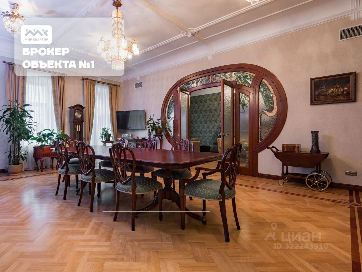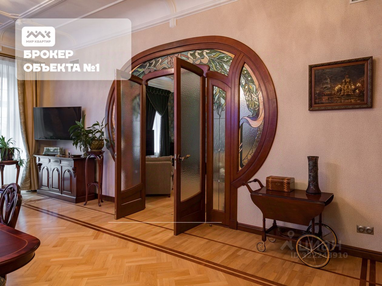 Арт. 117859354 В самом центре Петербурга, на пересечении проспекта Чернышевского и Захарьевской улицы, в Доходном доме Н. М. Нельговской — памятнике культурного наследия — появилась возможность стать владельцем по-настоящему исключительной квартиры. Всего в нескольких минутах пешком находятся Летний сад, Таврический сад и Воскресенская набережная. Здесь вы сможете наслаждаться утренними прогулками и красотой города в любое время года. Дом, прошедший капитальный ремонт в 2016 году, сохранил архитектурную ценность и атмосферу Петербурга начала XX века, но при этом отвечает всем требованиям современного ритма жизни. С первого шага вас встречает петербургская парадная — лепнина, простор, высокие потолки и широкая лестница. Пространство площадью 245 м² объединяет историю, архитектуру и утончённый современный комфорт. Квартира впервые в продаже. Просторная кухня-гостиная создана для встреч с друзьями и тёплых семейных ужинов. Мастер-спальня с гардеробной и ванной комнатой с окном, еще одна комната и кабинет дарят ощущение уюта и тишины, а отдельная курительная комната добавляет пространству особый шарм, напоминая о традициях старинных петербургских особняков. Кроме того, в квартире есть сервисное помещение, постирочная, которые обеспечивают дополнительное удобство в быту. Авторский ремонт в стиле модерн поражает изысканностью: потолки с искусной росписью под дерево, лепнина в каждой комнате, люстры, выполненные на заказ, мраморные подоконники и витражи ручной работы, созданные известной петербургской художницей. Современные технические решения — индивидуальная вентиляция, собственная котельная, тёплые полы — обеспечивают высокий уровень комфорта. Особое внимание заслуживает интерьер. Вся мебель выполнена из премиальных итальянских материалов: итальянская кухня, техника Miele, а также коллекционные предметы: лампы Тиффани после реставрации, антикварные комоды, стулья, картины, гравюры и вазы, привезённые с аукционов по всему миру. Это предложение для тех, кто ищет не квадратные метры, а уникальный стиль жизни — в историческом сердце Северной столицы. Предлагаем ПРЕМИАЛЬНОЕ обслуживание для требовательных клиентов. Оперативно организуем просмотр, предоставим полную информацию по объекту. 20 лет работы с требовательными клиентами подготовили нас к решению ВАШИХ сложных задач. Будем рады знакомству! Ул. Рубинштейна, д.8.