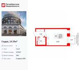 Продается просторная студия от застройщика в жилом комплексе ''Бионика Заповедная'' в динамичном Приморском районе.До метро можно добраться на транспорте всего за 11 минут.Удобная, классическая, функциональная европланировка, вместительная прихожая 2.96 м². Общая площадь студии - 24.65 м², жилая 18 м², высота потолка 2.77 м.Квартира продается с отделкой ''Норд Лайн светлый плюс''.Что особенного в ЖК ''Бионика Заповедная''?• Оазис в городе 3 минуты пешком до Новоорловского заказника (140 ГА)• Захватывающие виды из окон на хвойный лесопарк• Всесезонный ''Заповедный парк'' во дворе площадью 23000 кв.м.• 5 единых входных групп с авторским дизайном и лаундж-зонами, сити-виллы на первых этажах с палисадниками и высотой потолков до 4 м• Места притяжения: фонтан ''Бионика'', спортивный кластер со скейт-парком, фотозоны с арт-объектами