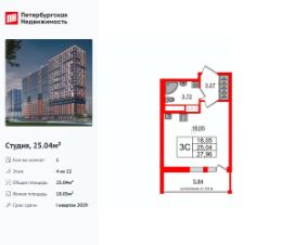 Строим кварталы для жизни с заботой о будущем. Предлагается студия комфорт-класса площадью 23,07 кв.м в корпусе 1 на 7-м этаже, в жилом комплексе ''Квартал Лаголово''.В квартире с готовой отделкой мы поклеили обои под покраску, постелили полы в комнатах и санузлах, выполнили отделку стен. Установили сантехнику и межкомнатные двери, провели электрику. Это лучшее соотношение цены, качества и затраченного времени. Осталось только выбрать место для обеденного стола и удобного дивана. Приобрести квартиру возможно по специальным акциям от застройщика, с текущими условиями акций можно ознакомиться в блоке ''Акций''.Цена динамическая и может отличаться, уточняйте актуальность у застройщика.''Квартал Лаголово'' — жилой комплекс в Ломоносовском районе Ленинградской области.До сердца Петербурга — час на машине, до станции метро ''Проспект Ветеранов'' — 30 минут, до аэропорта Пулково — 35 минут.Рядом Гатчинский дворец, музей-заповедник ''Петергоф'', Дворцовый парк в Красном Селе и природный памятник ''Дудергофские высоты''. Три школы и восемь детских садов будут построены прямо на территории квартала. На первых этажах домов откроются магазины, салоны красоты, кабинет врача.Дома высотой до 11 этажей с панорамными балконами выполнены в скандинавском стиле.Занимайтесь йогой в воркаут-пространстве и бегайте по зеленому бульвару. Предусмотрели догхабы, площадь с амфитеатром и паркинги за пределами двора.В подъездах — безбарьерная среда, круглосуточное видеонаблюдение и специальные помещения для колясок и велосипедов.Все планировки в ''Квартале Лаголово'' — с увеличенными окнами.