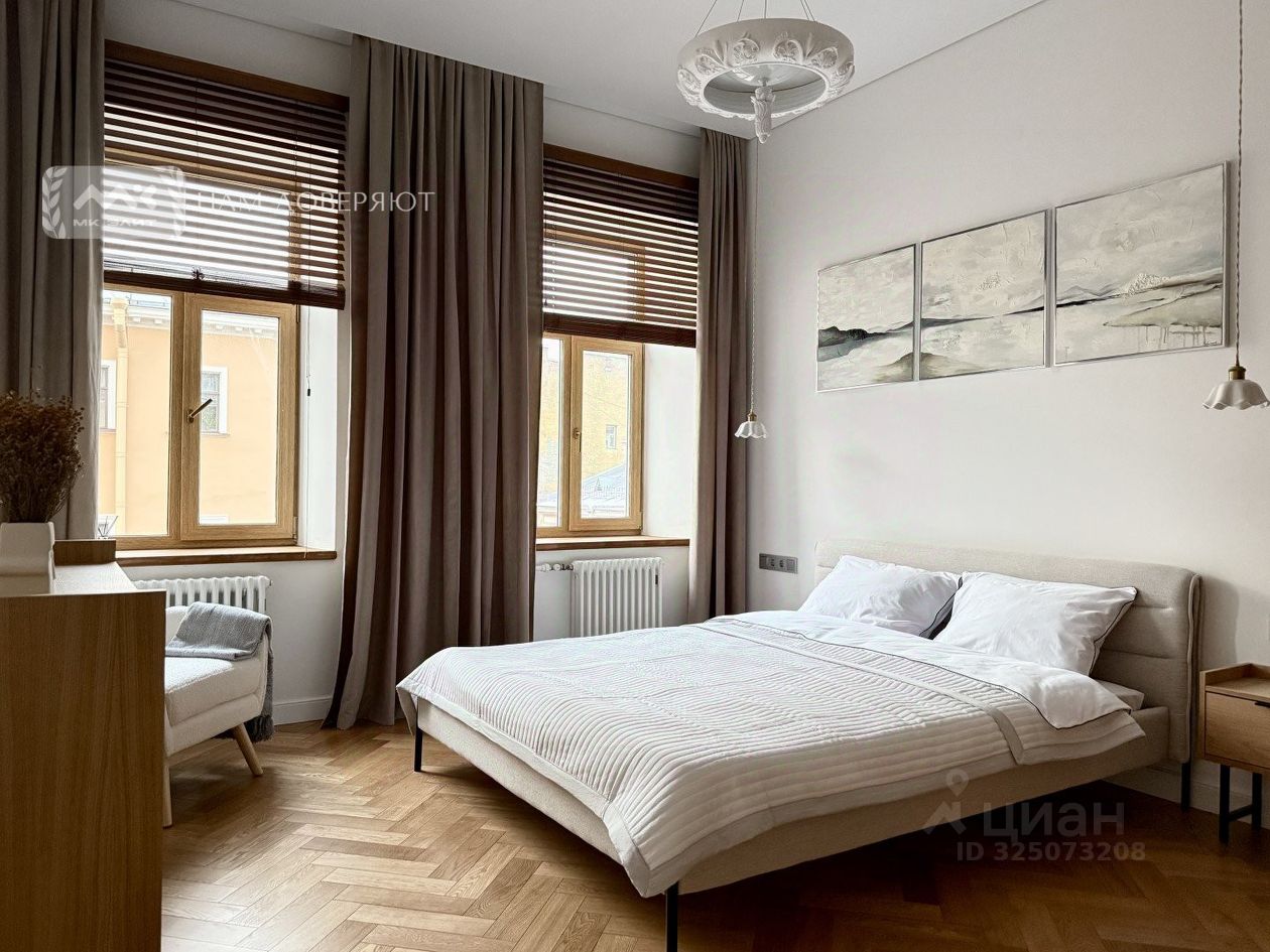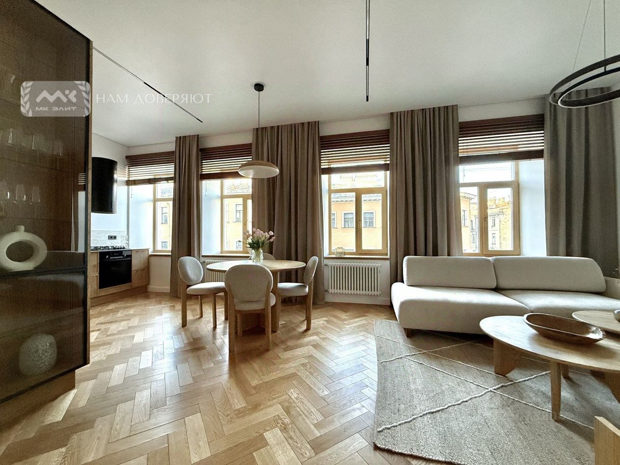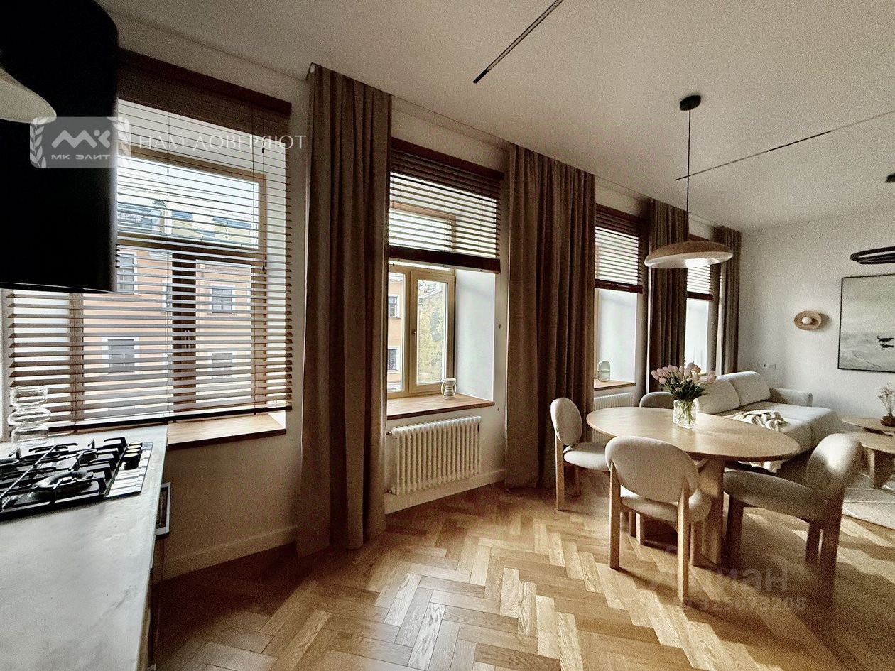 Арт. 127813982 Квартира с новым ремонтом, большой кухней-гостиной и 2 спальнями. Дом после капитального ремонта 1986 года с железобетонными перекрытиями. Парадный вход с улицы Радищева - чистая и пологая лестница без коммунальных квартир. В квартире выполнен новый качественный ремонт: дубовый паркет, высокие эмалированные двери, кухня - натуральный шпон, техника Bosch, много мест хранения - все шкафы крашеный МДФ, что делает их долговечными и тактильно приятными. Квартира очень светлая - окна на запад, из которых открывается вид на улицу Радищева и зелень Солдатского переулка. Планировка согласована: большая кухня-гостиная на 4 окна, 2 спальни и 2 санузла, кондиционер тоже согласован. Потолки выше 3 метров. По периметру квартиры - только толстые капитальные стены: идеальная тишина и никаких соседей сверху. В доме абсолютно новая кровля - ее полностью заменили в 2025 году. Парковка в закрытом дворе. Собственность физического лица, без обременений. Прямая продажа.