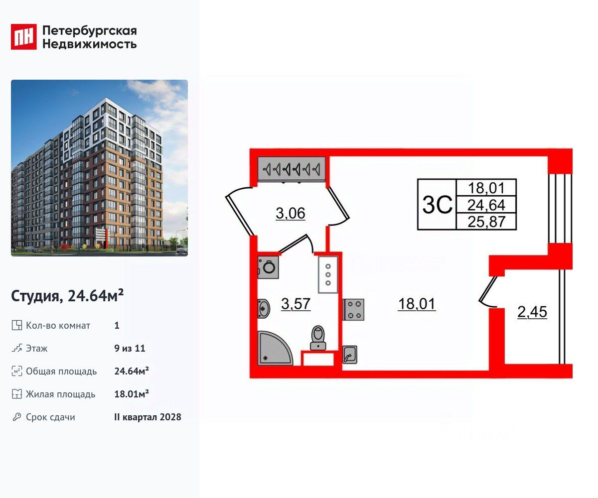 57 м² · Этаж 9 из 11
