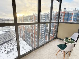 Продаётся видовая квартира-студия с дизайнерским ремонтом в эко-стиле и с великолепным панорамным видoм на город.Квартира абсолютно новая после ремонта, в ней никто не жил. Всё, что есть на фото также абсолютно новое (включая технику), остаётся новому собственнику. Общая площадь с балконом - 26,9м.В квартире 2 окна, что добавляет пространства и света.Студия полностью готова к проживанию, можно сразу же заехать и жить (вживую выглядит точно также как и на фотографиях).У квартиры увеличенный балкон - 5,7м с большими панорамными окнами в пол и прямым видом на город (вдалеке даже виден купол и колоннада Исаакиевского собора), также видно 2 флага в парке 300-летия Петербурга. Ночью город очень красиво подсвечен, что создаёт потрясающую атмосферу.Из техники - духовой шкаф, индукционная варочная панель, вытяжка, большой полноразмерный холодильник Indesit, стиральная машина Indesit, телевизор, микроволновая печь, чайник, тостер.Шторы блэкаут.В квартире сделано 2 сценария освещения (день, вечер/ночь), что экономит потребление света за счет светодиодных светильников, закарнизного интерьерного света и декоративной стены с подсветкой.Общий свет можно также изменить по желанию - включить тёплое или холодное освещение.В парадной 4 лифта, квартира находится в конце коридора (соседи не будут ходить мимо квартиры).У дома расположен небольшой сквер для прогулок, а также в 5 минутах ходьбы открылся новый парк Эко-тропа с длинной прогулочной зоной вдоль леса.Студия находится в престижном Приморском районе Петербурга. Вокруг жилого комплекса есть всё необходимое для жизни: детские сады, школы, магазины, пекарни, аптеки, Оzоn, Wildbеrriеs, очень хорошие детские площадки. Остановки общественного транспорта прямо у дома, удобный и быстрый выезд на ЗСД и КАД. Также рядом с комплексом продолжается активное строительство новой станции метро - срок сдачи 2028 год, пешком 15 минут.Прямая продажа, 1 взрослый собственник, без обременений, никто не прописан.