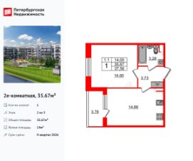 Продается просторная 1-комнатная квартира от застройщика в жилом комплексе ''Парадный ансамбль'' в престижном Московском районе.До метро можно добраться на транспорте всего за 20 минут.Удобная, классическая, функциональная европланировка, большая кухня-гостиная 14.66 м², вместительная прихожая 3.73 м². Общая площадь квартиры - 35.67 м², жилая 14 м², высота потолка 2.77 м.Квартира продается с отделкой ''Норд Лайн серый''.Что особенного в ЖК ''Парадный ансамбль''?• Инновационный Лицей Setl с оригинальной архитектурной концепцией и уникальной образовательной средой• Масштабное малоэтажное строительство в престижном Московском районе• Рекреационные зоны: парадный парк в центре квартала, ручей с собственной набережной, центральная площадь, ресторанный комплекс и пешеходный бульвар• Фасады из керамогранита и кирпича с яркими и акцентными входными группами• Две самые большие площадки Setl Kids и Setl Sport• Уникальные квартиры.High Flat на последних этажах, палисадники у квартир на первом этаже, семейные секции, квартиры с саунами и окном в ванной