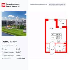Продается уютная студия от застройщика в жилом комплексе ''Парадный ансамбль'' в престижном Московском районе.До метро можно добраться на транспорте всего за 20 минут.Уникальная, функциональная европланировка, вместительная прихожая 3.11 м². Общая площадь студии - 21.85 м², жилая 15.36 м², высота потолка 2.77 м.Квартира продается с отделкой ''Норд Лайн светлый''.Что особенного в ЖК ''Парадный ансамбль''?• Инновационный Лицей Setl с оригинальной архитектурной концепцией и уникальной образовательной средой• Масштабное малоэтажное строительство в престижном Московском районе• Рекреационные зоны: парадный парк в центре квартала, ручей с собственной набережной, центральная площадь, ресторанный комплекс и пешеходный бульвар• Фасады из керамогранита и кирпича с яркими и акцентными входными группами• Две самые большие площадки Setl Kids и Setl Sport• Уникальные квартиры.High Flat на последних этажах, палисадники у квартир на первом этаже, семейные секции, квартиры с саунами и окном в ванной