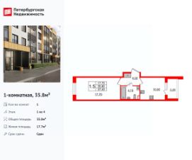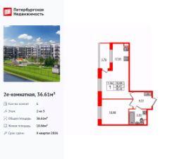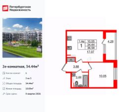 Продается просторная 1-комнатная квартира от застройщика в жилом комплексе ''Univer City'' в на юге Санкт-Петербурга.До метро можно добраться на транспорте всего за 30 минут.Удобная, классическая, функциональная европланировка, большая кухня-гостиная 17.4 м², просторная прихожая 4.1 м². Общая площадь квартиры - 35.6 м², жилая 10 м², высота потолка 2.78 м.Квартира продается с отделкой ''NORD LINE WHITE''.Что особенного в ЖК ''Univer City''?• Малоэтажное строительство• Скандинавские фасады с отделкой керамогранитом, акцентные входные группы• Закрытые внутренние дворы без машин• Пешеходный променад с тематическими зонами, еловый сквер и яблоневый сад• Univer Park, включая SetlSport и SetlKids, площадку для выгула собак и зоны отдыха• Инновационный Лицей Setl с оригинальной архитектурной концепцией и уникальной образовательной средой