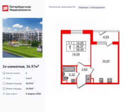 Продается просторная 1-комнатная квартира от застройщика в жилом комплексе ''Univer City'' в на юге Санкт-Петербурга.До метро можно добраться на транспорте всего за 30 минут.Удобная, классическая, функциональная европланировка, большая кухня-гостиная 17.16 м², просторная прихожая 4.22 м². Общая площадь квартиры - 38.25 м², жилая 12.08 м², высота потолка 3.07 м.Квартира продается с отделкой ''NORD LINE SILVER''.Что особенного в ЖК ''Univer City''?• Малоэтажное строительство• Скандинавские фасады с отделкой керамогранитом, акцентные входные группы• Закрытые внутренние дворы без машин• Пешеходный променад с тематическими зонами, еловый сквер и яблоневый сад• Univer Park, включая SetlSport и SetlKids, площадку для выгула собак и зоны отдыха• Инновационный Лицей Setl с оригинальной архитектурной концепцией и уникальной образовательной средой