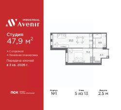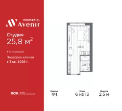 Просторные 1-комн. апартаменты-студия с отделкой в ЖК ''Industrial AVENIR'' на 12 этаже. Общая площадь: 25.6 кв.м., площадь гостиной 21.8 кв.м., из которых 5 кв.м. выделено под кухонную зону. Все окна выходят на одну сторону. В апартаментах один совмещенный санузел. Высота потолков 2.5 м. Апартаменты находятся в корпусе 1. Дом монолитный, одноподъездный, высотой 13 этажей. На этаже 64 квартиры. В подъезде 3 пассажирских и 3 грузовых лифта. Окончание строительства - 3 квартал 2026 года. Оформление сделки по договору долевого участия. В шаговой доступности от дома имеются станции метро (расстояние по прямой): ''Кировский завод'' (300 м), ''Путиловская'' (300 м), ''Автово'' (1.6 км), также недалеко от этого корпуса расположены станции метро: ''Нарвская'', ''Ленинский Проспект'', ''Балтийская''. 13ти этажное здание апарт-отеля строится по монолитной технологии. В номерном фонде 739 апартаментов, в том числе юниты с террасами и в формате ''евро 2'', офисные и коммерческие помещения, оборудованный коворкинг, подземный паркинг. На первом этаже лобби 160 кв.м. с рецепшн, выставочным пространством, кафе и гостевой зоной. Окончание строительства апарт - отеля - III квартал 2026 года. Оформление сделки по договору долевого участия. Семейная ипотека на апартаменты не распространяется. ОТДЕЛКАВсе апартаменты сдаются с полной чистовой отделкой, выполненной в концептуальном индустриальном стиле. Стены оформлены обоями под покраску в сером оттенке. Одна из стен акцентная - с декоративной штукатуркой, имитирующей бетон. Элементы черного металла представлены в трековых светильниках, дверной фурнитуре и сантехнике. На полу уложен износоустойчивый ламинат с деревянной фактурой. Еще одним элементом индустриального стиля в отделке апартамента является крупноформатный керамогранит на полу и стенах санузла, имитирующий фактуру и цвет кортеновской стали.ЗD по шоу руму. РАСПОЛОЖЕНИЕ Апарт-отель Industrial Avenir строится в 300-х метрах от метро ''Кировский завод'' и ''Путиловская'' (открытие 2025 г) на центральной магистрали Кировского района проспекте Стачек. Близость развязок с ЗСД и КАД фактически снимает любые ограничения в осмотре пригородов и выбора направлений в личном туристическом плане на день.Предпосылкой для открытия пятого апарт-отеля сети Avenir - Industrial Avenir, стал высокий потенциал локации рядом с крупным производственным кластером, центральной магистралью Кировского района и шаговой доступностью от двух станций метро. Новый апарт-отель возводится рядом с первым апарт-отелем сети - Putilov Avenir, открытым в 2022 году. УПРАВЛЕНИЕ ДОХОДНОСТЬЮУправлением номерным фондом Industrial Avenir займется структура ГК ''ПСК'' PSK Invest, входящая в пятерку крупнейших управляющих компаний апарт-отелями в Санкт-Петербурге. Купить апартаменты в Industrial Avenir возможно сразу с управлением, заключив договор с УК PSK Invest и, тем самым, приобрести готовый арендный бизнес. Апартаменты недвижимое имущество, которое является вашей собственностью, и вы капита