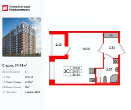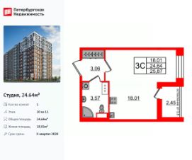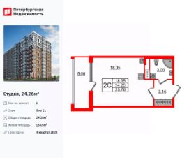 Продается просторная студия от застройщика в жилом комплексе ''Астра Континенталь'' в активно развивающимся Невском районе.До метро можно добраться пешком всего за 5 минут.Удобная, классическая, функциональная европланировка, вместительная прихожая 3.06 м². Общая площадь студии - 24.64 м², жилая 18.01 м², высота потолка 2.77 м.Квартира продается с отделкой ''Норд Лайн серый плюс''.Что особенного в ЖК ''Астра Континенталь''?• Уникальная локация 400 метров до метро, 300 метров до благоустроенной набережной• Самодостаточный квартал со всей инфраструктурой в 3-х км от центра• Впечатляющий объем благоустройства: 30 000 кв. метров рекреационных зон с променадом и гейзерными фонтанами• Масштабный парк ''Город Спорта''