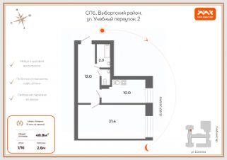 Комплекс расположен на западе Васильевского острова, в 500 метрах от берега Финского залива. До ст. м. ''Приморская'' 10 минут на транспорте. Внутри квартала школа на 400 учеников, два детских сада на 80 мест каждый, Для автовладельцев предусмотрены наземный и подземные паркинги. На подземном уровне каждого дома, куда можно попасть на лифте прямо со своего этажа, предусмотрены индивидуальные кладовые. Широкоформатные окна квартир, остекленные в пол балконы и лоджии, прозрачные двери и витринные окна коммерческих этажей наполняют дом естественным светом.В данной квартире-очень удачная планировка, выделена зона кухни, в прихожей зона шкафов, большой санузел, застекленная лоджия. Ремонт можно сделать под свой вкус.