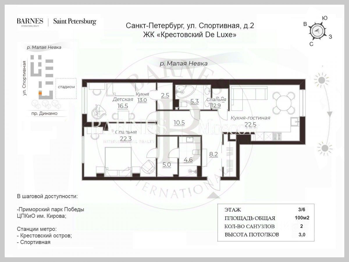 ID 585698 Элитная квартира в доме премиум-класса на Песочной набережной, 12 Предлагается эксклюзивная квартира в одном из самых респектабельных жилых комплексов Санкт-Петербурга ''Новая звезда''. Строительством комплекса управляла известная лондонская компания Bovis Lend Lease. Дом расположен в тихом и зелёном районе на Петроградской стороне, с видом на Малую Невку. Здесь живут известные личности — артисты, бизнесмены, медийные фигуры — атмосфера приватности и статуса чувствуется с порога. О доме: В доме 78 квартир, в нем есть все для комфортного проживания, от спорта до отдыха: - Закрытая охраняемая территория, высокий уровень безопасности и конфиденциальности, - Круглосуточный консьерж-сервис, - 2 -уровневый подземный паркинг, - Гостевая парковка под круглосуточным видеонаблюдением, - Собственная инфраструктура уровня люкс: oБассейн, oТренажёрный зал, oКабинеты массажа и косметолога, oСауна и зона SPA (а также солярий), oБильярдная, oСигарная комната, oЗал для настольного тенниса, oДетская комната, oКафе только для жильцов дома, с возможностью заказа еды прямо в квартиру, oПрачечная О квартире: - Просторная планировка, - Панорамные окна, - Дизайнерский ремонт, - Полностью укомплектована дорогой дизайнерской мебелью, - Прекрасный вид на воду (на Малую Невку) и зелёные насаждения, - Высота потолка 3,03м. Встроенная система кондиционирования и увлажнения (приточно-вытяжная система). Выполнена по индивидуальному проекту, с дизайнерским ремонтом и полностью укомплектованная мебелью и техникой лучших премиальных европейских брендов (диван Pack Франческо Бинфар, Edra, кровать Pedus Франк Эльке, стол Carlo Scarpa Samo Italy). В интерьере использованы оригинальные предметы искусства и антикварные элементы. Один собственник. Без обременений. Квартира для тех, кто ценит комфорт, эстетику и высокий уровень жизни. Предложение уникальное — второй такой квартиры нет. Звоните, чтобы договориться о просмотре — такая квартира не задерживается на рынке. Номер объекта: #1/585698/14501