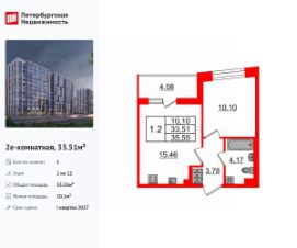 Продается уютная 1-комнатная квартира от застройщика в жилом комплексе ''Бионика Заповедная'' в динамичном Приморском районе.До метро можно добраться на транспорте всего за 11 минут.Удобная, классическая, функциональная европланировка, большая кухня-гостиная 15.45 м², вместительная прихожая 3.78 м². Общая площадь квартиры - 34.02 м², жилая 11.11 м², высота потолка 2.77 м.Квартира продается с отделкой ''Норд Лайн светлый плюс''.Что особенного в ЖК ''Бионика Заповедная''?• Оазис в городе 3 минуты пешком до Новоорловского заказника (140 ГА)• Захватывающие виды из окон на хвойный лесопарк• Всесезонный ''Заповедный парк'' во дворе площадью 23000 кв.м.• 5 единых входных групп с авторским дизайном и лаундж-зонами, сити-виллы на первых этажах с палисадниками и высотой потолков до 4 м• Места притяжения: фонтан ''Бионика'', спортивный кластер со скейт-парком, фотозоны с арт-объектами