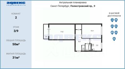 2-к, Авиаконструкторов проспект, 20 корп. 3 Показать на карте