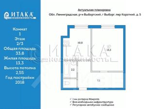 1690143 В продаже очень уютная однокомнатная квартира (по факту 2-х комнатная), в городе Выборге, в Северном поселке ул. Большая Гвардейская, дом 4, рядом с парком Монрепо.Квартира располагается на первом высоком этаже. Окна выходят на юго-восточную сторону cолнце заботливо освещает квартиру и согревает Вас. Квартира с большой кухней - 10 кв.м. Центральный водопровод, горячая вода (водонагреватель). Теплые полы в прихожей и в душевой, батареи заменены. Окна выходят во двор никакого постороннего шума от центральных дорог, стеклопакеты.В комнате на полу ламинат. В кухне, коридоре и санузле керамогранит. Дверь металлическая.Вас будут окружать дружелюбные и приветливые соседи.Место очень тихое, вдали от шумных проспектов. Рядом парк музей-заповедник ''ПАРК МОНРЕПО'', учебное заведение РГПУ им А. Герцена. Через дорогу стадион для прогулок с детьми и занятия спортом, магазин. Автобусная остановка в двух минутах ходьбы (хорошее транспортное сообщение, в час пик через каждые двадцать минут). Звоните, договоримся о просмотре.
