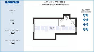 1-к, 12-я В.О. линия, 55/20 Показать на карте