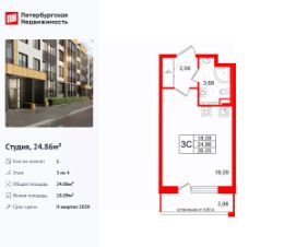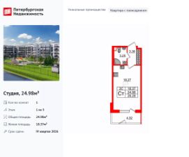 Продается просторная студия от застройщика в жилом комплексе ''Парадный ансамбль'' в престижном Московском районе.До метро можно добраться на транспорте всего за 20 минут.Удобная, классическая, функциональная европланировка, вместительная прихожая 3 м². Общая площадь студии - 24.55 м², жилая 18.08 м², высота потолка 2.77 м.Квартира продается с отделкой ''NORD LINE WHITE''.Что особенного в ЖК ''Парадный ансамбль''?• Инновационный Лицей Setl с оригинальной архитектурной концепцией и уникальной образовательной средой• Масштабное малоэтажное строительство в престижном Московском районе• Рекреационные зоны: парадный парк в центре квартала, ручей с собственной набережной, центральная площадь, ресторанный комплекс и пешеходный бульвар• Фасады из керамогранита и кирпича с яркими и акцентными входными группами• Две самые большие площадки Setl Kids и Setl Sport• Уникальные квартиры.High Flat на последних этажах, палисадники у квартир на первом этаже, семейные секции, квартиры с саунами и окном в ванной