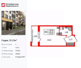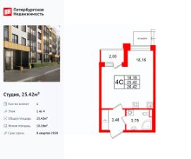 Просторные 1-комн. апартаменты-студия с отделкой в ЖК ''Ladozhsky AVENIR'' на 4 этаже. Общая площадь: 25.68 кв.м., площадь гостиной 21.63 кв.м., из которых 5 кв.м. выделено под кухонную зону. Все окна выходят на одну сторону. В апартаментах один совмещенный санузел. Высота потолков 2.7 м. Апартаменты находятся в корпусе 1. Дом монолитный, одноподъездный, высотой 14 этажей. На этаже 50 квартир. В подъезде 4 пассажирских и 4 грузовых лифта. В шаговой доступности от дома расположены станции метро (расстояние по прямой): ''Ладожская'' (800 м), ''Новочеркасская'' (1.7 км), также недалеко от этого корпуса находятся станции метро: ''Площадь Александра Невского'', ''Чернышевская'', ''Площадь Восстания''. Тест-драйв в готовых апартаментах. Перед покупкой можно арендовать номер для проживания с компенсацией от застройщика. Ladozhsky AVENIR — апартотель бизнескласса в историческом районе Матросская слобода на Правобережье Невы в 10 минутах пешком от станции метро ''Ладожская'' и 10 минутах на автомобиле до Невского проспекта.Апартотель Ladozhsky AVENIR — четвертый проект сети сервисных апартотелей AVENIR и первый мультиформатный проект, включающий в себя апартаменты, офисы и коммерческие помещения. Относится к высокому сегменту ''Бизнес - класс''Все апартаменты сдаются с отделкой ''под ключ'' в единой стилистике. Семейная ипотека на апартаменты не распространяется.Деятельность по сдаче апартаментов в аренду осуществляет управляющая компания PSK INVEST, входящая в группу компаний ''ПСК''.Для передачи апартамента в управление PSK IINVEST необходимо заключить договор на приобретение пакета ''Меблировка и оснащение''. #2MBMOc