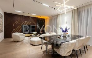 Предлагается к продаже просторная 4-комнатная квартира площадью 175 кв. м с дизайнерским ремонтом от студии Art Spice.При входе — удобный холл с гостевым санузлом, постирочной зоной и техникой Miele.Гостиная зонирована на комфортные функциональные пространства. Здесь - мраморная декоративная стена с интегрированной дверью, паркет из американского ореха, светильники итальянских брендов, акустика Bang Olufsen, ковёр из шёлка ручной работы, диван и кресло Eichholtz. В обеденной зоне — мраморный стол и стулья Casa Milano.Кухня — итальянская Rossana, оснащена встроенной техникой премиум-уровня Gaggenau и Miele: холодильник, духовой шкаф, варочная панель, посудомоечная и кофемашина, винный шкаф, вакууматор.В квартире три спальни. Две детские с отдельными гардеробными и встроенными шкафами легко трансформируются под кабинет или гостевую. Ванная комната для детей оборудована ванной, душем и умывальником.Мастер-спальня выполнена в концепции private suite: просторная комната с панорамными окнами, паркетом, шторами с электроприводом, отдельной зоной для чтения и работы. Большая гардеробная с мраморным островом и дизайнерской люстрой Corbett создаёт ощущение загородного дома. Ванная отделана двумя породами мрамора, оборудована душевой, отдельно стоящей ванной и двойными раковинами, сантехникой Axor и Gessi. Установлена кровать 22 м с матрасом швейцарского бренда Trois Couronnes, акустика Bose, телевизор Sony.Интерьер продуман до мелочей: установлена приточно-вытяжная вентиляция, конвекторное оборудование с регулировкой температуры, система видеонаблюдения и охранная сигнализация с фото- и видеофиксацией.Из окон открывается вид на благоустроенный закрытый двор с ландшафтным дизайном и круглосуточной охраной. На территории — три детские площадки, прогулочная набережная, доступ к спортивному комплексу ''Динамо'' (футбол, теннис, волейбол).На первых этажах дома расположены рестораны Mina и Yng, бутики, салоны красоты, массажный SPA, барбершоп, студия бокса, магазины, включая ''Азбуку вкуса''. Для автовладельцев предусмотрен удобный паркинг, возможна покупка двух больших машино-мест рядом с лифтом.