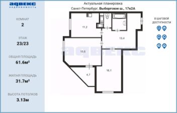 ID: 1914857Предлагается к покупке видовая квартира на последнем 23-м этаже в ЖК Шуваловские Высоты''. Квартира с панорамными окнами, через которые открываются красивые виды на город и Суздальские озера. Квартира двусторонняя, светлая, просторная, с качественным ремонтом, высота потолков 3,13 метра. Функциональная планировка, просторная прихожая с удобной корпусной мебелью для хранения, изготовлена на заказ.. Вся мебель и техника Bosch (холодильник, посудомоечная машина, варочная панель, духовой шкаф, стиральная машина) остается новому собственнику.Зеленый район, через дорогу Суздальские озера и эко-тропы для пеших прогулок. Развитая инфраструктура, рядом детские площадки, сады, школы (новая школа с бассейном рядом с домом (лицей 486). В пешей доступности магазины Лента, Окей, Вкусвилл, Азбука Вкуса, SPAR, а также аптеки, кафе и пекарни. Рядом с домом торговый центр ''Авеню'', с большим количеством магазинов. В пешей доступности 3 фитнес центра: Fitness House Prestige, Prestige Fitness, Sport Life с бассейном. Удобный выезд на КАД и ЗСД без пробок. Остановка общественного транспорта в 5 минутах ходьбы, до станции метро ''Озерки'' 10 минут транспортом, 15 минут пешком до метро ''Проспект Просвещения''.По документам: один взрослый собственник, в собственности более 5 лет, полная стоимость в договоре. Подходит под ипотеку любого банка.Показы по договоренности, звоните, пожалуйста, отвечу на все Ваши вопросы.