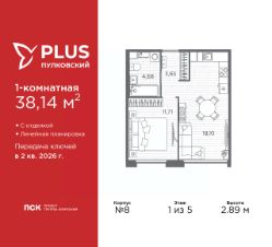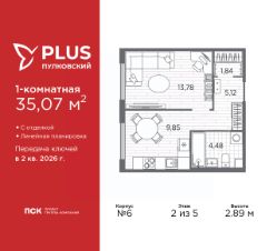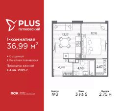 Продается 1-комн. квартира с отделкой в ЖК ''PLUS Пулковский'' на 3 этаже. Общая площадь: 36.99 кв.м., жилая: 12.18 кв.м., площадь просторной кухни-столовой: 13.17 кв.м. Все окна выходят на одну сторону. В квартире один совмещенный санузел. Высота потолков 2.75 м. Квартира находится в корпусе 3. Дом монолитный, одноподъездный, высотой 5 этажей. На этаже 11 квартир. В подъезде 1 грузовой лифт. Начало строительства - 4 квартал 2023 года. Окончание строительства - 4 квартал 2025 года. Оформление сделки по договору долевого участия. ЖК ''PLUS Пулковский'' расположен в престижном Московском районе на пересечении Пулковского и Волхонского шоссе, по которым можно быстро добраться до КАД и до станций метро Московская и Звёздная. Поблизости расположены дворцово-парковые ансамбли Пушкина, Павловска, Петергофа, Гатчины, Ломоносова, а также вся торговая и развлекательная инфраструктура: ТК Лето, Outlet Village Pulkovo, Пулково-3, гипермаркеты Лента, Окей, Metro. На территории комплекса будут построены средняя образовательная школа на 825 мест с двумя бассейнами, 2 детских сада на 220 мест каждый. В детских садах тоже будут бассейны. Кроме этого будет построен медицинский центр для взрослых и детей. Во дворах буду оборудованы спортивные и безопасные детские площадки, на первых этажах домов будут расположены коммерческие помещения. Для автолюбителей будут подземные и наземный паркинги. Для жителей домов будет доступно ''приложение жителя'', которое предоставит такие возможности:— дистанционное открытие дверей в парадную и на территорию комплекса,— просмотр изображений с видеокамер,— контроль за показаниями счетчиков,— коммуникация с УК.Показания всех счетчиков будут собираться дистанционно.В квартирах будет выполнена коллекторная разводка отопления в стяжке пола от коллекторов в межквартирных коридорах. Застройщик ЖК ''PLUS Пулковский'' - группа компаний ПСК, которая является одной из ведущих девелоперских компаний Санкт Петербурга. Более 16 лет она возводит в Северной столице качественное жилье премиум, бизнес и комфорт-класса, социальные объекты школы и детские сады, апарт-комплексы и торговые центры и является четырехкратным обладателем золотого знака ''Надежный застройщик России''. #z6b7vt