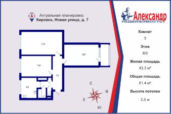1-90183 Кировский район Ленинградской обл., г.Кировск, ул.Новая 23В продаже уютная и теплая квартира - студия общей площадью 22.3 кв.м (без учета большого балкона) на 5 этаже 9-ти этаж дома.Комната 16,1 кв.м с большим балконом и видом на Кировск (окно на запад), на полу ламинат.Удобный совмещенный санузел, полностью отделан кафелем.В доме 2 лифта, один из них - грузовой. Невысокие коммунальные платежи.Отличный новый ЖК в Кировске в окружении зелени.Просторно, чисто, обустроенные дворы с дорожками и детскими площадками, достаточно мест для парковки.До центра Кировска, автостанции, Невы с парком и пляжеммин прогулочным шагом.Вся инфраструктура рядом. До Санкт-Петербурга на машинемин, автобусом - 40 мин (до метро Дыбенко).Отличная история квартиры: первая продажа после приобретения у застройщика, документы в порядке.Более 5 лет, один собственник. Добро пожаловать на просмотрыИтака. 30 лет на рынке.