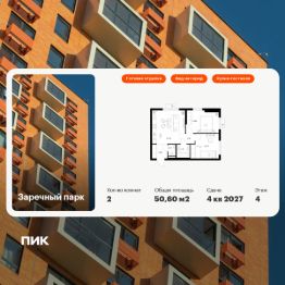 Продаётся 2-комн. квартира площадью 50,6 кв.м на 4 этаже 24 этажного дома (Корпус 5, Секция 2) проекта ПИК Заречный парк. Светлый просторный подъезд на уровне земли, функциональная планировка, большие окна, c отделкой. Жилой квартал ''Заречный парк'' расположен в районе Новое Девяткино Ленинградской области. В 7 минутах на автомобиле - станция метро ''Девяткино'', до КАД - 10 минут на машине. В 2026 году будет достроена шестиполосная трасса в обход Мурино, примыкающая к Пискарёвскому проспекту. Она станет дополнительным выездом на КАД для жителей ''Заречного парка''. Проект включает восемь домов высотой от 15 до 24 этажей, три многоуровневых паркинга, детский сад и школу. В зелёных дворах-парках будут оборудованы современные детские и спортивные площадки, обустроены места для отдыха. На первых этажах разместятся магазины, кафе и другие сервисы. Планировки продуманы так, чтобы каждый квадратный метр жилой площади можно было эффективно использовать. Все квартиры сдаются с готовой отделкой. Артикул 1021793 (Застройщик ООО ''СПЕЦИАЛИЗИРОВАННЫЙ ЗАСТРОЙЩИК ИНВЕСТАЛЬЯНС'') [cn_sbp_1813704]