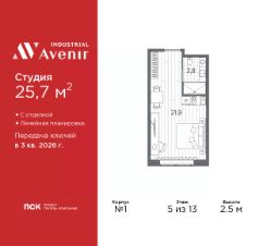 Просторные 1-комн. апартаменты-студия с отделкой в ЖК ''Industrial AVENIR'' на 9 этаже. Общая площадь: 24.5 кв.м., площадь гостиной 20.7 кв.м., из которых 5 кв.м. выделено под кухонную зону. Все окна выходят на одну сторону. В апартаментах один совмещенный санузел. Высота потолков 2.5 м. Апартаменты находятся в корпусе 1. Дом монолитный, одноподъездный, высотой 13 этажей. На этаже 64 квартиры. В подъезде 3 пассажирских и 3 грузовых лифта. Окончание строительства - 3 квартал 2026 года. Оформление сделки по договору долевого участия. В шаговой доступности от дома имеются станции метро (расстояние по прямой): ''Кировский завод'' (300 м), ''Автово'' (1.6 км), также недалеко от этого корпуса находятся станции метро: ''Нарвская'', ''Ленинский Проспект'', ''Балтийская''. 13ти этажное здание апарт-отеля строится по монолитной технологии. В номерном фонде 739 апартаментов, в том числе юниты с террасами и в формате ''евро 2'', офисные и коммерческие помещения, оборудованный коворкинг, подземный паркинг. На первом этаже лобби 160 кв.м. с рецепшн, выставочным пространством, кафе и гостевой зоной. Окончание строительства апарт - отеля - III квартал 2026 года. Оформление сделки по договору долевого участия. Семейная ипотека на апартаменты не распространяется. ОТДЕЛКАВсе апартаменты сдаются с полной чистовой отделкой, выполненной в концептуальном индустриальном стиле. Стены оформлены обоями под покраску в сером оттенке. Одна из стен акцентная - с декоративной штукатуркой, имитирующей бетон. Элементы черного металла представлены в трековых светильниках, дверной фурнитуре и сантехнике. На полу уложен износоустойчивый ламинат с деревянной фактурой. Еще одним элементом индустриального стиля в отделке апартамента является крупноформатный керамогранит на полу и стенах санузла, имитирующий фактуру и цвет кортеновской стали.ЗD по шоу руму. РАСПОЛОЖЕНИЕ Апарт-отель Industrial Avenir строится в 300-х метрах от метро ''Кировский завод'' и ''Путиловская'' (открытие 2025 г) на центральной магистрали Кировского района проспекте Стачек. Близость развязок с ЗСД и КАД фактически снимает любые ограничения в осмотре пригородов и выбора направлений в личном туристическом плане на день.Предпосылкой для открытия пятого апарт-отеля сети Avenir - Industrial Avenir, стал высокий потенциал локации рядом с крупным производственным кластером, центральной магистралью Кировского района и шаговой доступностью от двух станций метро. Новый апарт-отель возводится рядом с первым апарт-отелем сети - Putilov Avenir, открытым в 2022 году. УПРАВЛЕНИЕ ДОХОДНОСТЬЮУправлением номерным фондом Industrial Avenir займется структура ГК ''ПСК'' PSK Invest, входящая в пятерку крупнейших управляющих компаний апарт-отелями в Санкт-Петербурге. Купить апартаменты в Industrial Avenir возможно сразу с управлением, заключив договор с УК PSK Invest и, тем самым, приобрести готовый арендный бизнес. Апартаменты недвижимое имущество, которое является вашей собственностью, и вы капитализируете свои вложения и