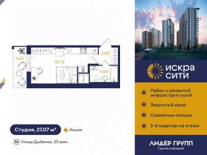 Продается просторная студия от застройщика в жилом комплексе ''Бионика Заповедная'' в динамичном Приморском районе.До метро можно добраться на транспорте всего за 11 минут.Удобная, классическая, функциональная европланировка, просторная прихожая 3.35 м². Общая площадь студии - 24.95 м², жилая 18 м², высота потолка 2.77 м.Квартира продается с отделкой ''Норд Лайн светлый плюс''.Что особенного в ЖК ''Бионика Заповедная''?• Оазис в городе 3 минуты пешком до Новоорловского заказника (140 ГА)• Захватывающие виды из окон на хвойный лесопарк• Всесезонный ''Заповедный парк'' во дворе площадью 23000 кв.м.• 5 единых входных групп с авторским дизайном и лаундж-зонами, сити-виллы на первых этажах с палисадниками и высотой потолков до 4 м• Места притяжения: фонтан ''Бионика'', спортивный кластер со скейт-парком, фотозоны с арт-объектами
