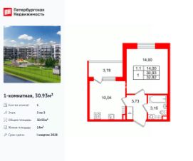 Продается уютная 1-комнатная квартира от застройщика в жилом комплексе ''Парадный ансамбль'' в престижном Московском районе.До метро можно добраться на транспорте всего за 20 минут.Удобная, классическая планировка, кухня 10.04 м², вместительная прихожая 3.73 м². Общая площадь квартиры - 30.93 м², жилая 14 м², высота потолка 3.07 м.Квартира продается с отделкой ''NORD LINE WHITE''.Что особенного в ЖК ''Парадный ансамбль''?• Инновационный Лицей Setl с оригинальной архитектурной концепцией и уникальной образовательной средой• Масштабное малоэтажное строительство в престижном Московском районе• Рекреационные зоны: парадный парк в центре квартала, ручей с собственной набережной, центральная площадь, ресторанный комплекс и пешеходный бульвар• Фасады из керамогранита и кирпича с яркими и акцентными входными группами• Две самые большие площадки Setl Kids и Setl Sport• Уникальные квартиры.High Flat на последних этажах, палисадники у квартир на первом этаже, семейные секции, квартиры с саунами и окном в ванной