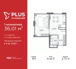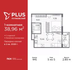 Продается 1-комн. квартира с отделкой в ЖК ''PLUS Пулковский'' на 5 этаже. Общая площадь: 38.96 кв.м., жилая: 11.56 кв.м., площадь просторной кухни-столовой: 15.74 кв.м. Все окна выходят на одну сторону. В квартире один балкон, один совмещенный санузел. Высота потолков 2.89 м. Дом монолитный, многоподъездный, высотой 5 этажей. Квартира находится в 5-й секции в корпусе 6. На этаже 11 квартир. В подъезде 1 грузовой лифт. Окончание строительства - 2 квартал 2026 года. Оформление сделки по договору долевого участия. Уютный пятиэтажный city квартал PLUS Пулковский расположен в престижном Московском районе на пересечении Пулковского и Волхонского шоссе в новом формирующемся микрорайоне. Рядом проходит одна из важнейших транспортных артерий города Пулковское шоссе, а в 10 минутах езды два въезда на КАД и въезд на ЗСД. Благодаря удобному и быстрому выезду на Пулковское шоссе, можно легко добраться до центра города за 35 мин. До станций метро ''Московская'' и ''Купчино'' - 15 мин. на машине, а до аэропорта Пулково - 17 мин. В составе квартала: 30 пятиэтажных домов, школа со спортивным стадионом, 2 детских сада с бассейнами, наземные и подземные паркинги, центральный зеленый бульвар с play hub и местами отдыха. Благоустройство квартала продумано до мельчайших деталей, в его основе - забота о качестве жизни каждого жителя. Дома возводятся по современной монолитной технологии строительства с вентилируемыми фасадами. Благодаря большим увеличенным окнам и отсутствию высокоэтажных домов, во всех квартирах максимальный объем естественного света. В составе квартала запланированы социально-значимые объекты: школа на 825 мест со спортивным стадионом и бассейнами, два детских сада с бассейнами на 220 мест каждый. Территория квартала зонирована таким образом, чтобы автомобильные и пешеходные потоки и не пересекались. Прогулочные и велосипедные дорожки отделены от автомобильных проездов зелеными насаждениями. Дворы закрыты для машин, что дает чувство дополнительной безопасности для жителей особенно, для самых маленьких. Вся территория квартала безбарьерная. Здесь нет пандусов, резких перепадов высот или неудобных ступеней. Вход в парадные с уровня земли. В каждом дворе есть своя оборудованная детская площадка. А в центре микрорайона расположится большая игровая площадка play hub с пространством для командных игр. PLUS Пулковский располагается в молодом микрорайоне, который сейчас находится в стадии активного развития. Он будет обладать собственной развитой инфраструктурой. В радиусе 15 минут езды на автомобиле располагаются многочисленные магазины, супермаркеты, спортивные, образовательные и медицинские учреждения, парки и достопримечательности. Для автомашин предусмотрены отдельно стоящий 5-ти этажный паркинг на 958 машино-мест, две подземные парковки на 367 машино-мест и наземные парковочные зоны по внешнему периметру микрорайона. #2MBT6c