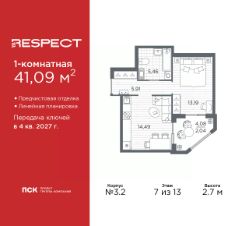 Продается 1-комн. квартира с предчистовой отделкой в ЖК ''RESPECT'' на 7 этаже. Общая площадь: 42.27 кв.м., жилая: 14.18 кв.м., площадь просторной кухни-столовой: 15.8 кв.м. Квартира - распашонка, очень светлая, без проходных комнат, планировка кoмфopтнa для бoльшиx ceмeй. В квартире один балкон, один совмещенный санузел. Высота потолков 2.7 м. Дом монолитный, многоподъездный, переменной этажности, от 10 до 13 этажей. Квартира находится в 1-й секции высотой 13 этажей в корпусе 3.2. На этаже 5 квартир. В подъезде 1 пассажирский и 1 грузовой лифт. Начало строительства - 3 квартал 2025 года. Окончание строительства - 4 квартал 2027 года. Оформление сделки по договору долевого участия. В шаговой доступности от жилого комплекса расположены станции метро (расстояние по прямой): ''Лесная'' (800 м), ''Площадь Мужества'' (1.4 км), ''Выборгская'' (1.9 км), также недалеко от этого корпуса находятся станции метро: ''Академическая'', ''Политехническая''. Жилой квартал ''RESPECT'' строится на Полюстровском пр, 87, в одной из самых востребованных локаций Петербурга. В 10 минутах пешком - метро ''Лесная'' и в 10 минутах на транспорте - Петроградская сторона. Высота домов от 7 до 13 этажей. Квартиры сдаются с отделкой white box и с чистовой отделкой. На территории Respect строится школа на 1125 учащихся и детский сад на 240 мест. Запроектированы собственная газовая котельная, закрытая территория, дворы без машин и подземные паркинги с лифтами.В проекте предусмотрены трапециевидные балконы или остекленные лоджии, которые, с одной стороны, исключают монотонность фасада, являясь декоративными элементами, с другой дополнительным функциональным пространством в квартирах. Цветовая гармония фасадов каждого дома раскрывает характер квартала. Коричневый цвет клинкерного кирпича со структурой водяных штрихов — цвет уюта и безопасности, сдержанности и надёжности. Вентилируемые фасады облицованы клинкерным кирпичом. Его высокая прочность позволяет давать 100 лет гарантии на этот материал. Водопоглощение клинкерного кирпича составляет менее 5%, за счет чего у него высокая теплопроводность и прочность. В квартале запроектированы внутренние закрытые территории дворов домов без доступа автомобилей и безбарьерная среда для велосипедистов и колясок. Предусмотрены IP-домофония с функцией дистанционного открывания калиток и парадных, а также дистанционный сбор показаний счетчиков и мобильное приложение для жителей. Для безопасности жителей квартала - круглосуточное видеонаблюдение и служба охраны. В каждой квартире предусмотрены внешние корзины для кондиционеров. Вся территория квартала будет связана единой концепцией благоустройства, разработанной ландшафтным бюро L.BURO. На эксплуатируемой кровле на уровне первого этажа в домах 1 и 4 будут обустроены общественные видовые террасы. Это станет не только привлекательным местом с красивым видом, но и удобным, многофункциональным пространством. Дизайн парадных зон и входных групп - сочетание лаконичности отделки и декоративных