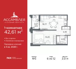 Просторная двухкомнатная квартира с отделкой в ЖК ''RESPECT'' на 3 этаже. Общая площадь: 55.11 кв.м., жилая: 23.32 кв.м., площадь просторной кухни-столовой: 15.05 кв.м. Комнаты изолированные, все окна выходят на одну сторону. В квартире один балкон и одна лоджия, два совмещенных санузла. Терраса представляет собой роскошную зону отдыха для проведение вечеров в кругу семьи и друзей или организация вечеринок. Высота потолков 2.7 м. В ЖК Respect представлены два варианта чистовой отделки: светлая и тёмная. Потолки: натяжные или выравнивание с окраской,Окна: из ПВХ профиля с двухкамерным стеклопакетом,Остекление балконов и лоджий: алюминиевое однослойное,Полы: покрытие из ламината, полы санузлов: керамическая плитка или керамогранит,Стены: обои под окраску, стены санузлов: керамическая плитка или керамогранит.Установлены межкомнатные двери.Санузел: раковина с тумбой, ванна или душевая кабина, унитаз, смесители. Выполнена полная разводка электропроводки. Квартира находится в корпусе 6. Дом монолитный, одноподъездный, высотой 13 этажей. На этаже 8 квартир. В подъезде 1 пассажирский и 1 грузовой лифт. Окончание строительства - 4 квартал 2026 года. Оформление сделки по договору долевого участия. В шаговой доступности от жилого комплекса имеются станции метро (расстояние по прямой): ''Лесная'' (800 м), ''Площадь Мужества'' (1.4 км), ''Выборгская'' (1.9 км), также недалеко от этого корпуса находятся станции метро: ''Академическая'', ''Политехническая''. Жилой квартал ''RESPECT'' строится на Полюстровском пр, 87, в одной из самых востребованных локаций Петербурга. В 10 минутах пешком - метро ''Лесная'' и в 10 минутах на транспорте - Петроградская сторона. Высота домов от 7 до 13 этажей. Квартиры сдаются с отделкой white box и с чистовой отделкой. На территории Respect строится школа на 1125 учащихся и детский сад на 240 мест. Запроектированы собственная газовая котельная, закрытая территория, дворы без машин и подземные паркинги с лифтами.В проекте предусмотрены трапециевидные балконы или остекленные лоджии, которые, с одной стороны, исключают монотонность фасада, являясь декоративными элементами, с другой дополнительным функциональным пространством в квартирах. Цветовая гармония фасадов каждого дома раскрывает характер квартала. Коричневый цвет клинкерного кирпича со структурой водяных штрихов — цвет уюта и безопасности, сдержанности и надёжности. Вентилируемые фасады облицованы клинкерным кирпичом. Его высокая прочность позволяет давать 100 лет гарантии на этот материал. Водопоглощение клинкерного кирпича составляет менее 5%, за счет чего у него высокая теплопроводность и прочность. В квартале запроектированы внутренние закрытые территории дворов домов без доступа автомобилей и безбарьерная среда для велосипедистов и колясок. Предусмотрены IP-домофония с функцией дистанционного открывания калиток и парадных, а также дистанционный сбор показаний счетчиков и мобильное приложение для жителей. Для безопасности жителей квартала - круглосуточное виде