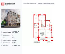 Продается уютная, семейная 4-комнатная квартира от застройщика в жилом комплексе ''Imperial Club'' в уютном Василеостровском районе.До метро можно добраться на транспорте всего за 7 минут.Окна от пола до потолка позволят безгранично любоваться видами Петербурга, наполнят комнату солнцем и светом!Уникальная планировка, кухня 17.86 м², просторная прихожая 10.97 м². Общая площадь квартиры - 137.08 м², жилая 71.95 м², высота потолка 3 м.Квартира продается c черновой отделкой.Что особенного в ЖК ''Imperial Club''?• Парадные виды на Большую Неву и Английскую набережную• Изысканная архитектура жилого комплекса.• Уникальное благоустройство.• Двухуровневые входные группы.• Панорамные окна, открытые террасы, вантовые балконы.• Двухэтажные сити-виллы с патио, квартиры с возможностью обустройства камина и зимнего сада с растениями.• Просторный фитнес-центр с бассейном и спа-зоной на первом этаже .• Премиальный сервис: заказ такси,выгул собак, уборка, доставка вещей .