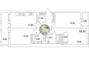 Продается просторная 2-комнатная квартира от застройщика в жилом комплексе ''Титул в Московском'' в престижном Московском районе.До метро можно добраться пешком всего за 25 минут.Мастер-спальня с собственной ванной комнатой. Самое приватное пространство в вашей квартире.Уникальная, функциональная европланировка, большая кухня-гостиная 17.22 м², вместительная прихожая 6.97 м². Общая площадь квартиры - 60.6 м², жилая 26.83 м², высота потолка 2.77 м.Квартира продается с отделкой ''NORD LINE WHITE ВК NEW''.Что особенного в ЖК ''Титул в Московском''?• Престижный Московский район• Авторская архитектурная концепция• 2 центральные входные группы с ресепшн и лаундж-зонами• Кленовая аллея с арт-стеллой, цветочная аллея и сад трав• Уютные дворы-патио, площадки SetlKids и SetlSport• Инновационный Лицей Setl с оригинальной архитектурной концепцией и уникальной образовательной средой