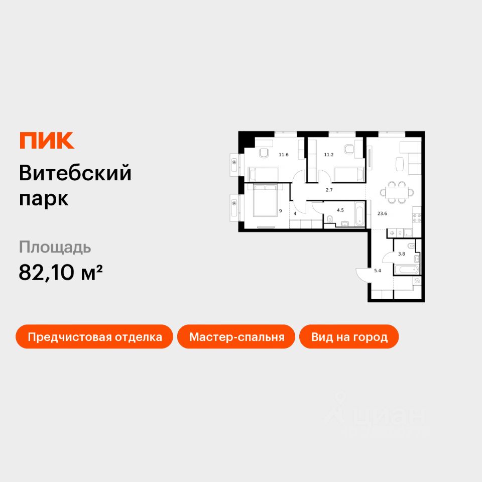 Продаётся 3-комн. квартира площадью 82,1 кв.м на 2 этаже 12 этажного дома (Корпус 6, Секция 1) проекта ПИК Витебский парк. Светлый просторный подъезд на уровне земли, функциональная планировка, большие окна, предчистовая отделка. Жилой квартал ''Витебский парк'' находится во Фрунзенском районе Санкт-Петербурга, в 15 минутах пешком от метро ''Обводный канал''. А в 2027 году всего в паре минут от проекта планируют открыть станцию метро ''Боровая''. В квартал входят 3 детских сада, школа и 7 жилых домов с дворами-парками, куда не могут зайти посторонние люди и заехать автомобили. Школа на 1250 мест и детский сад на 350 мест откроются одновременно с заселением первой очереди, это значит, что жители проекта смогут отдать своих детей в новые образовательные учреждения на территории квартала. Во дворах приятно отдыхать, знакомиться с соседями и даже заниматься йогой, а для детей мы построим детские площадки. Рядом появятся современные спортивные площадки. На первых этажах домов откроются магазины, кафе и другие сервисы. Через весь жилой район протянется широкий пешеходный бульвар для прогулок и спорта. Рядом с ''Витебским парком'' есть всё для комфортной жизни: магазины, торговые центры, фитнес-клубы, кафе и рестораны, а ещё детские сады, школы, вузы и поликлиника. Артикул 1005084 (Застройщик ООО ''СЗ ''Лиговский Сити'') [cn_sbp_1839675]