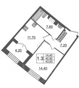 43 м2