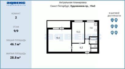 2-к, Художников проспект, 18 корп. 2 Показать на карте