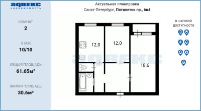 ID: 1915566К Вашему вниманию в продаже двухкомнатная квартира светлая, просторная и с удобной планировкой. Изолированные две комнаты (18кв.м +12кв.м), большая кухня 12кв.м, что позволяет комфортно разделить обеденную зону, раздельный санузел очень удобно. Рядом с домом находится всё необходимое для комфортного проживания. Для повседневных дел: магазины, школы, детский сад. Для отдыха и спорта: фитнес клуб, бассейн, парк Боевого братства, Ледовый дворец. До станции метро ''Проспект Большевиков'' всего 7 минут пешком. Идеальный вариант для семьи, кто ценит удобство, тишину и отличную транспортную доступность. Квартира без обременений, один взрослый собственник, некто не зарегистрирован. Звоните, пишите буду рада ответить на Ваши вопросы и организовать просмотр в удобное для Вас время.