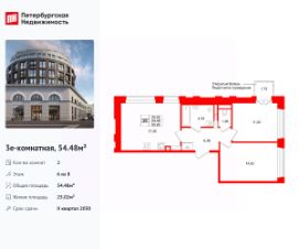 Продается уютная 2-комнатная квартира от застройщика в жилом комплексе ''Аристократ'' в уютном Василеостровском районе.До метро можно добраться пешком всего за 10 минут.Удобная, классическая, функциональная европланировка, большая кухня-гостиная 17.35 м², вместительная прихожая 6.39 м². Общая площадь квартиры - 54.48 м², жилая 25.02 м², высота потолка 2.7 м.Квартира продается с отделкой ''NORD LINE BUSINESS''.Что особенного в ЖК ''Аристократ''?• Васильевский остров - историческая локация с современными культурными кластерами• Индивидуальный облик каждого корпуса в единой архитектурной концепции• 7 парадных лобби с потолками до 7-ми метров• Цветущие сады, зеленые гостиные, фонтаны• Клуб резидентов ''Аристократ'': фитнес-клуб, коворкинг, гостиная с роялем, детский центр с кинотеатром• Технологичная среда на территории, в доме и в квартире• Премиальная отделка квартир - Nord line business