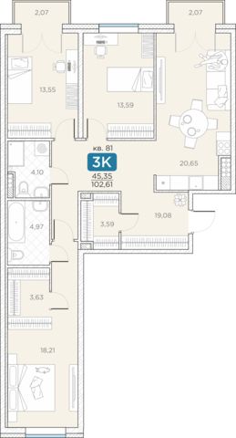 43 м2